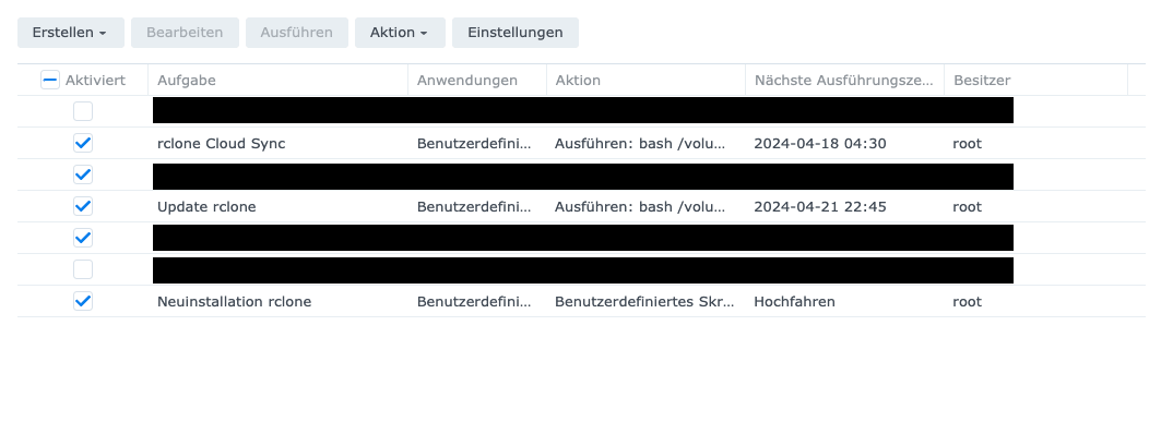 - rclone mit dem Synology Aufgabenplaner verbinden
